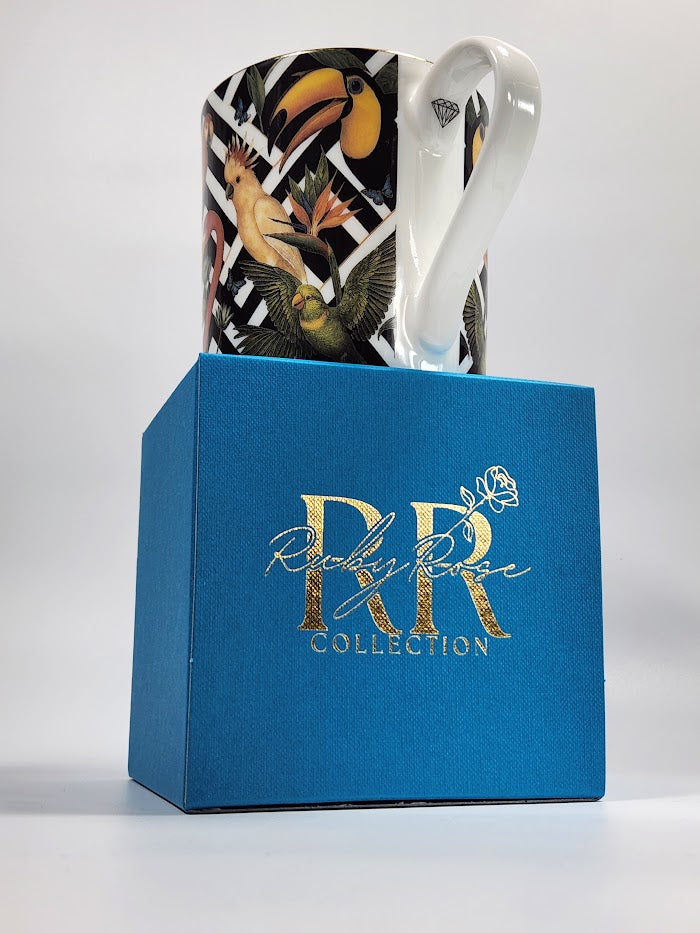 Experience refined elegance with our ‘Funky Jungle’ mug, crafted from the finest bone china. Delicately lightweight yet sophisticated, it features an intricate jungle design highlighted with a genuine gold edge, adding a touch of modern luxury to every sip. Pair with one of our treat trays for an effortlessly elevated tea or coffee moment.