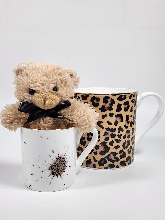 Bold and beautiful! Featuring a warm leopard print design and real gold edge, this matching set is perfect for mums and minis who love a little wild flair. Includes one mini mug with teddy bear — or add more for the full pride!