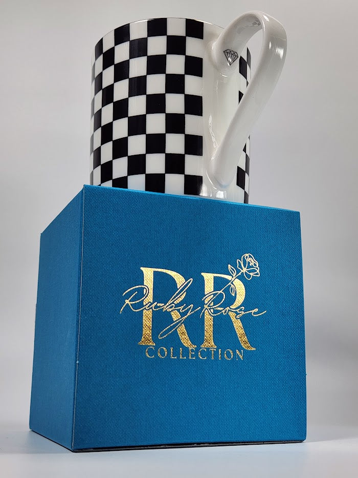 Experience refined elegance with our ‘Face Maze’ mug, crafted from the finest bone china. Delicately lightweight yet sophisticated, it features a sophisticated black and white checked design highlighted with a genuine gold edge, adding a touch of modern luxury to every sip. Pair with one of our treat trays for an effortlessly elevated tea or coffee moment.